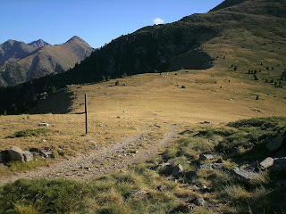 Ik zie er ook voor de laatste keer een drietal Fransen die ik sinds Arles sur Tech elke dag ben tegen gekomen. Ze zijn sneller dan ik en na het vertrek bij de Pic Neulos zie ik ze langzaam maar zeker verder weg lopen en ten slotte definitief uit beeld verdwijnen.